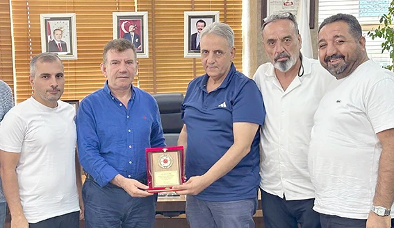 Ziyarette, 2024-2025 sezonunda amatör spora verdiği katkılardan dolayı Başkan Demir’e teşekkür plaketi takdim edildi.