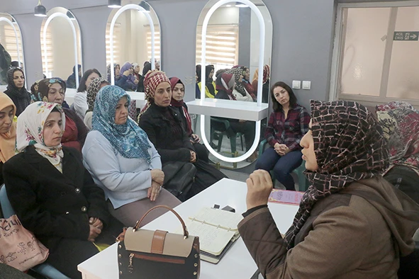 Büyük dikkat ve huşu içerisinde yapılan vaazı dinleyen BİLMEK kursiyerleri yapılan dini bilgilendirmeden oldukça memnun kaldı. Kur’an tilaveti ve okunan Mevlid-i Şerif’in ardından kadın kursiyerlere kandil simidi dağıtıldı.