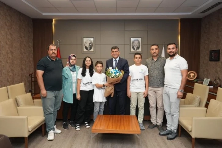 TEKNOFEST çerçevesinde bu yıl ilk olarak Ankara’da düzenlenen Deneyap Kart Robotik (ROBOLİG) yarışmasına katılan Bilim Şehitkamil 'Şehitkamil Kızılelma' takımı, geliştirdikleri “Akıllı Karavan” projesiyle bin 500 proje arasında, Türkiye 5.’si olmayı başardılar. Şehitkamil Kızıl Elma Takımından Ahmet Barut, Hayrunnisa Polat, Yusuf Türüdü ve takım danışmanı Asım Barut elde ettikleri başarıyı paylaşmak ve sağlanan imkanlar dolayısıyla teşekkür etmek için Şehitkamil Belediye Başkanı Rıdvan Fadıloğlu’nu makamında ziyaret etti. Sohbet ortamında geçen ziyarette, Şehitkamil Kızılelma Takım kaptanı Ahmet Barut, yapılan yarışmayla ilgili ve gerçekleştirdikleri projeyle ilgili Başkan Fadıloğlu’na bilgi verdi. Başkan Rıdvan Fadıloğlu, öğrencileri başarılarından ötürü tebrik ederek, kendilerine çeşitli hediyeler takdim etti.