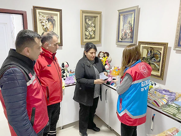 Batman Çok Amaçlı Toplum Merkezileri (ÇATOM) depremzedeler için patik, bere, atkı ve çocuklar için oyuncak üretiyor.