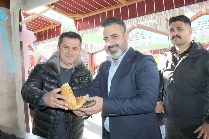 100 Yılın Aşı Bin Yılın Kardeşliği’ kapsamında gerçekleştirilen Gastronomi festivaline de katılan İl Başkanı Çetin, stantları ziyaret ederek eski bir gelenek olan ekmek arası Nuhut’u da tatma fırsatı da elde etti.