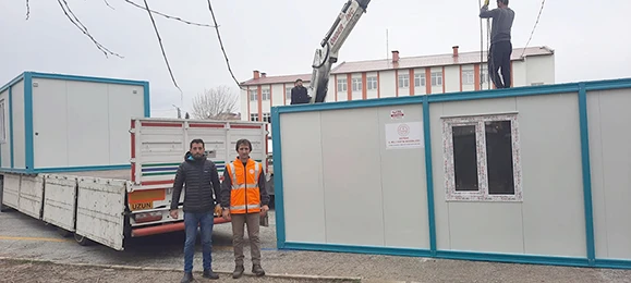 Barınmadan gıdaya, arama-kurtarmadan destek organizasyonlarına kadar her alanda faaliyet gösteren İl Milli Eğitim Müdürlüğü, depremin yıkıcı etkisine karşı vatandaşlara destek olmaya devam ediyor. Son olarak, okullar tarafından düzenlenen kermeslerden elde edilen gelirle alınan konteyner sınıflar, Kahramanmaraş'ın Göksun ilçesindeki deprem bölgesine ulaştırıldı.
