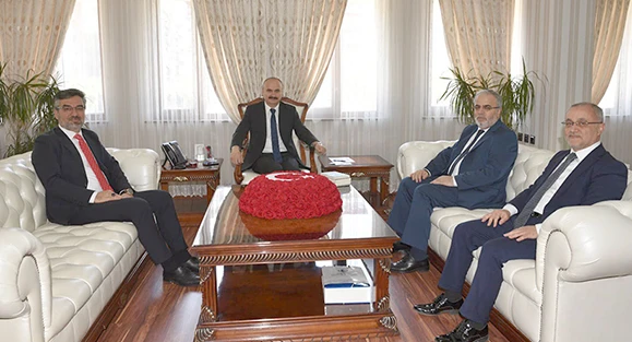 Batman Valisi ve Belediye Başkan Vekili Ekrem Canalp, İlimize çalışma ziyaretinde bulunan Diyanet İşleri Başkan Yardımcısı Doç. Dr. Burhan İşleyen ve beraberinde Din Hizmetleri Genel Müdürlüğü Zekat Hizmetleri Daire Başkanı Turgut Erhan ile Batman İl Müftüsü Nihat Kök'ü makamında kabul etti.