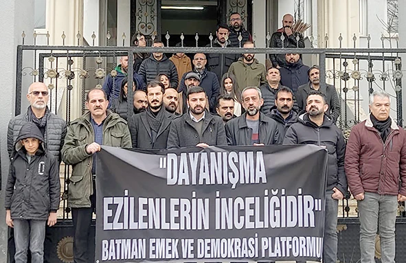 Petrol-İş Sendikası önünde yapılan açıklamada Batman Emek ve Demokrasi Platformu “Kahramanmaraş, Hatay, Adıyaman, Gaziantep, Malatya, Diyarbakır, Adana, Şanlıurfa, Osmaniye ve Kilis illerimizde büyük bir yıkıma yol açan depremde yaşamını kaybeden insanlarımızın ailelerine ve yakınlarına başsağlığı ve yaralılara acil şifalar diliyoruz.