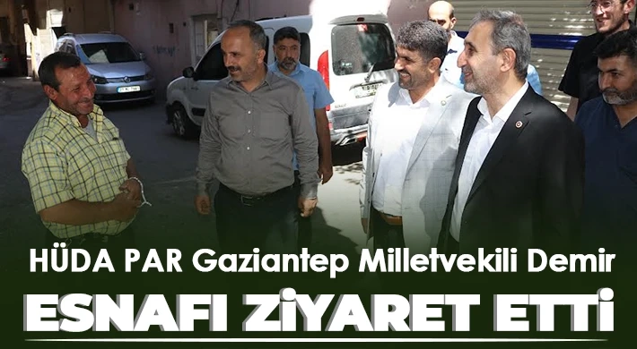 HÜDA PAR Gaziantep İl Başkanı Faruk Göçer ve beraberindeki heyetle birlikte esnaf ziyaretlerini sürdüren Milletvekili Demir, farklı meslek gruplarının yer aldığı esnafı ziyaret ederek esnafın sıkıntılarını, sorunlarını ve taleplerini dinledi.