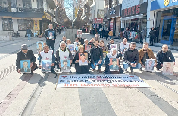 Gülistan Caddesinde bulunan İnsan Hakları Anıtı önünde bir araya gelen kayıp yakınları ‘Kayıplar Bulunsun Failler Yargılansın’ pankartını açtı.