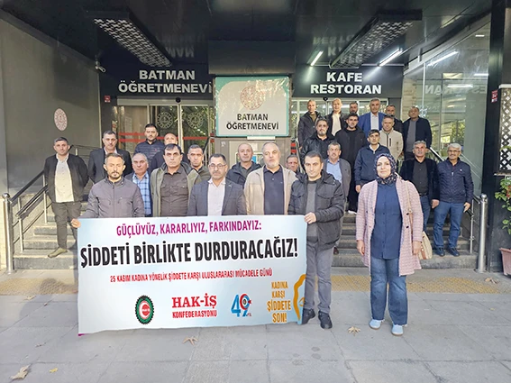 Hak-İş Konfederasyonu ve Hizmet İş Sendikası Batman İl Başkanı Bünyamin Söğüt, kadınların yaşam haklarına, özgürlüklerine ve onurlarına yönelik her türlü saldırıyı kınadıklarını belirterek, şiddeti üreten ve meşrulaştıran zihniyetin tamamen ortadan kaldırılması gerektiğini savundu. Kadınların yaşam hakkını savunmanın, toplumsal adalet ve barışın temel taşlarından biri olduğunu ifade etti.