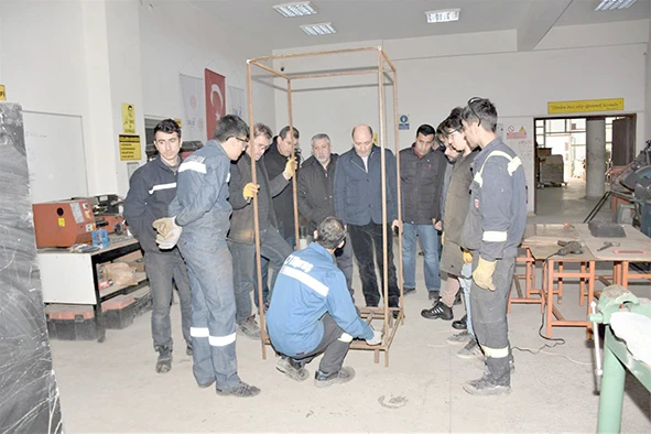 Depremden etkilenen vatandaşların yaralarına bir nebze merhem olmak amacıyla meslek liselerinin iş birliği halinde gönüllü öğretmen ve öğrenciler tarafından çalışmalar aralıksız devam ediyor. Deprem bölgelerinde ihtiyaç duyulan ısınma, barınma ve benzeri ihtiyaçların giderilmesi için soba, barınma çadırı, seyyar tuvalet ve su deposu hızlı bir şekilde üretiliyor.