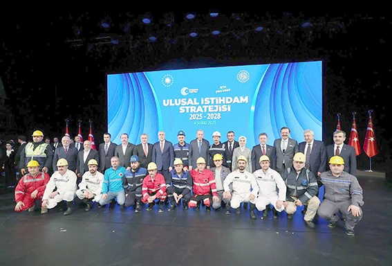 Cumhurbaşkanlığı Külliyesi, Türkiye’nin istihdam politikalarına yön verecek 2025-2028 Ulusal İstihdam Stratejisi Tanıtım Toplantısına ev sahipliği yaptı. Çalışma ve Sosyal Güvenlik Bakanlığının koordinasyonunda hazırlanan strateji belgesi ve eylem planlarının kamuoyuyla paylaşıldığı programa Cumhurbaşkanı Recep Tayyip Erdoğan’ın ev sahipliğinde Cumhurbaşkanı Yardımcısı Cevdet Yılmaz, bakanlar, akademisyenler, üniversite rektörleri, meslek kuruluşları ve iş dünyasının önde gelen temsilcileri ile sivil toplum kuruluşları mensupları katıldı.