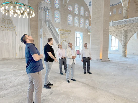 İl Başkanı Şahin ve heyeti, üniversite bünyesinde yapımına başlanan caminin, tamamlanması için yapılan çalışmaları görevlilerle birlikte yerinde görüp bilgi aldılar.