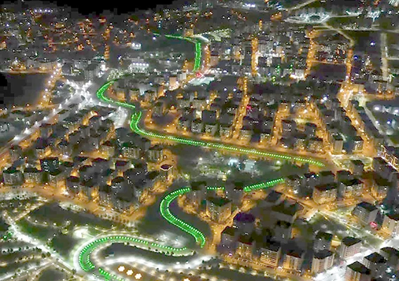 5 bin 500 metre uzunluğundaki DSİ sulama kanalı Türkiye’nin animasyonlu (1104 led armatürlü) en uzun led aydınlatması, doğa için yeşil yaktı. Geleceğe nefes sloganıyla gerçekleştirilen animasyonlu çalışma ile dikilecek her fidan, çocuklarımız için daha yeşil, daha yaşanabilir bir Türkiye olması için mesaj verildi.
