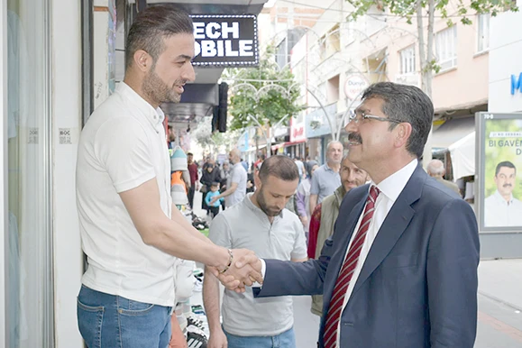 Turgut Özal Bulvarı ve Gülistan caddesinde esnaf ve vatandaşlarla selamlaşan Nasıroğlu, yolda sohbet ettiği vatandaşları valilik önünde yapılacak mitinge davet etti.