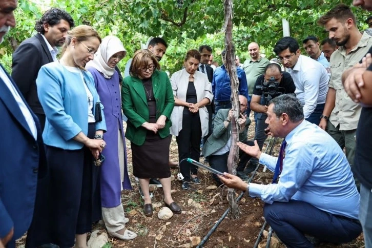 Gaziantep Büyükşehir Belediye Başkanı Fatma Şahin burada yaptığı konuşmada toprağa bilimsel yaklaşmanın öneminden bahsederek, “İşi ehline vermenin gururunu yaşıyoruz. Teknik ekibimiz her biri liyakat sahibi. Bize düşen şey, iyi bir dinleyici olarak yönetmek. Allah’ın izniyle Türkiye Yüzyılı başladı. Bu yüzyıl o kadar önemli ki. Bugün burada bu projelerimizi hayata geçirmenin mutluluğunu yaşıyoruz. 7 ay önce enkazın altından canlarımızı çıkarıyorduk. Bugün bunları konuşabilen yol arkadaşlarımıza çok teşekkür ediyorum. Siz çiftçilerimiz bizim gururumuzsunuz. Allah’ın izniyle en kısa sürede Nurdağı’mızda yeşil ekonomiyi tesis edeceğiz. Suyu ve toprağı yöneten dünyayı yönetecek. Biz bu şehirde bunu başaracağız. Deprem bölgesindeki iyileştirmeyi yeşil ekonomiyle başaracağız” şeklinde konuştu.