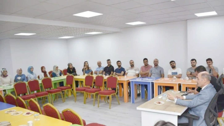 Milli Eğitim Müdürlüğü Kitap Okuma Noktası toplantı salonunda gerçekleşen ‘Öğretmen Buluşmaları’na İl Milli Eğitim Müdürü Mahmut Kurtaran, Şube Müdürü Abdurrahman Kardaş ve okuma grubu öğretmenleri katıldı. İl Milli Eğitim Müdürü Kurtaran'ın konuşmasıyla başlayan öğretmen buluşmaları toplantısında zorunlu eğitim çağındaki her kademeden öğrencilere kitap okuma alışkanlığı kazandırmanın önemi üzerinde duruldu.