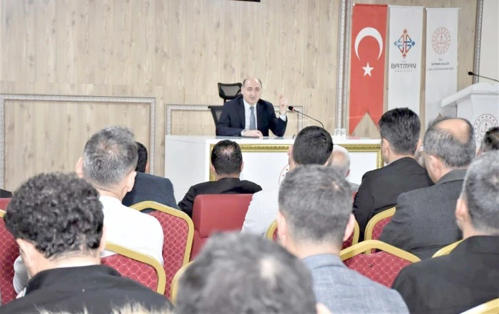 Batman İl Milli Eğitim Müdürlüğü toplantı salonunda gerçekleşen Ortaokul Müdürleri Aralık Ayı Bilgilendirme ve Değerlendirme Toplantısına; İl Milli Eğitim Müdürü Mahmut Kurtaran, Şube Müdürleri Murat Yağmur, Abdurrahman Kardaş, Hacı Arslan ve Okul Müdürleri katıldı. Şube Müdürü Murat Yağmur'un ortaokullarla ile ilgili bilgi sunumunun ardından toplantı, İl Milli Eğitim Müdürü Mahmut Kurtaran'ın konuşmasıyla devam etti.