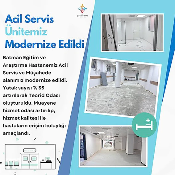 Acil servis ve müşahede alanlarının modernize edilmesiyle birlikte hastanenin yatak kapasitesi %35 oranında artırıldı. Ayrıca, tecrit odası oluşturularak hastaların izolasyon ihtiyaçları karşılandı.