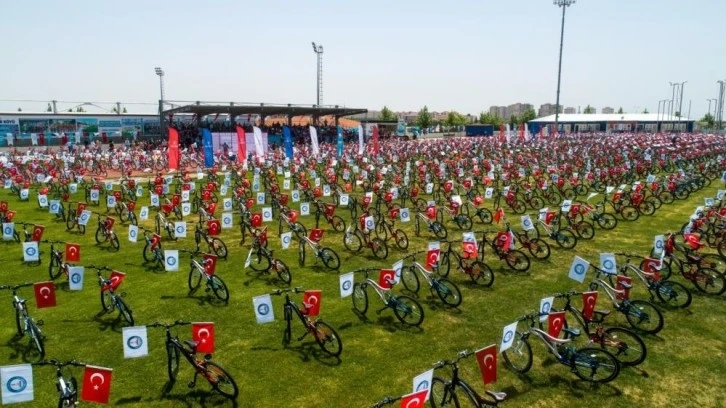 Öğrencilere bisiklet hediye eden Şahinbey Belediye Başkanı Mehmet Tahmazoğlu, “Gençlerin ve çocukların hayallerini süsleyen bisikletleri onlara hediye etmeye devam ediyoruz. 6 takdir ile başladığımız bisiklet hediye etme kampanyamızı 4 teşekküre indirdik. Şahinbey Belediyesi olarak 104 bin bisiklet aldık ve bu bisikletlerimizi sırayla hediye ediyoruz. Önce 6 takdir alan öğrencilerimize bisiklet verdik, sonra bunu 5’e düşürdük, sonra 4 takdire düşürdük, sonra 3, 2 takdire ve 5 teşekküre düşürdük. Şimdi ise 4 teşekkürü olan her öğrencimize bisikletlerini hediye ediyoruz. Bisikletleriniz hayırlı uğurlu olsun” diye konuştu.