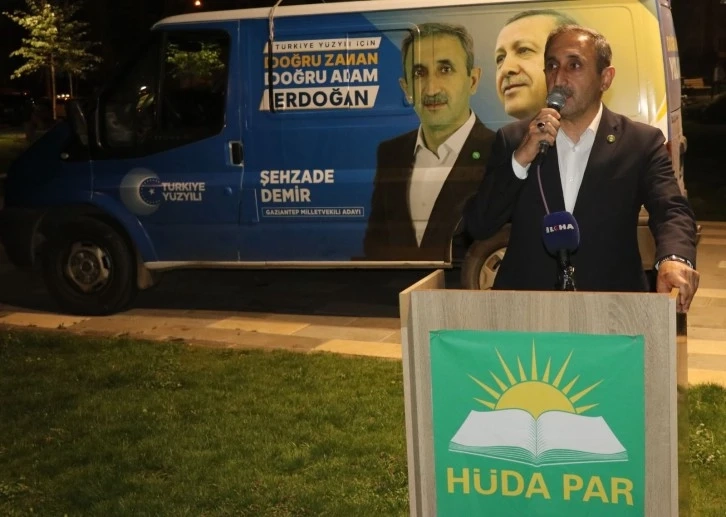 HÜDA PAR Genel sekreteri ve Ak Parti Gaziantep Milletvekili Adayı Şehzade Demir ise pazar günü yapılacak seçimin öneme vurgu yaparak gençlerden son saatlere kadar sahada olmalarını ve seçimler için çalışmalarını istedi.