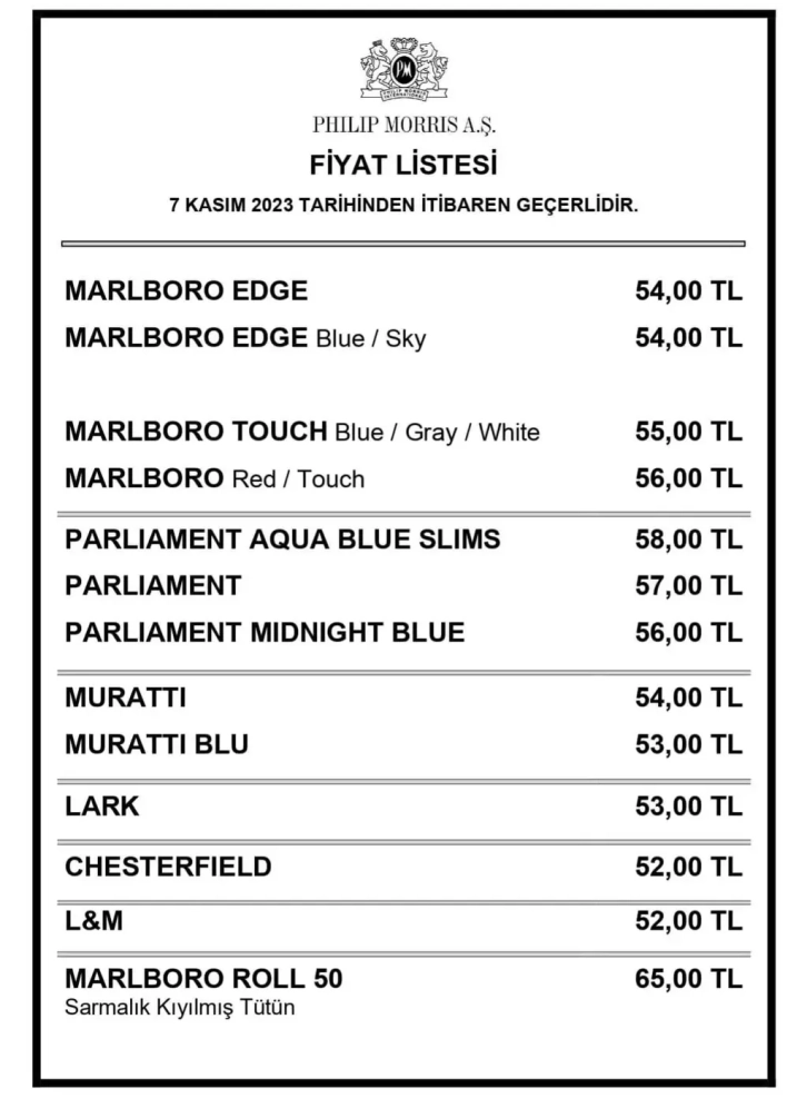 Bugünden geçerli olacak şekilde Philip Morris grubu sigaralara 5 TL zam yapıldı.