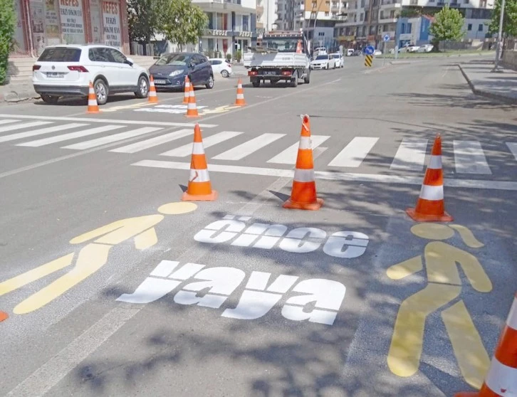 Okul çevresinde; araç, yaya ve öğrenci yoğunluğunun bulunduğu yerleri 'Önce Yaya' ikonlarıyla boyayarak trafik güvenliğini sağlayan Belediye Ulaşım Hizmetleri Müdürlüğü, gelen talepleri de hazırlanan program çerçevesinde değerlendiriyor.