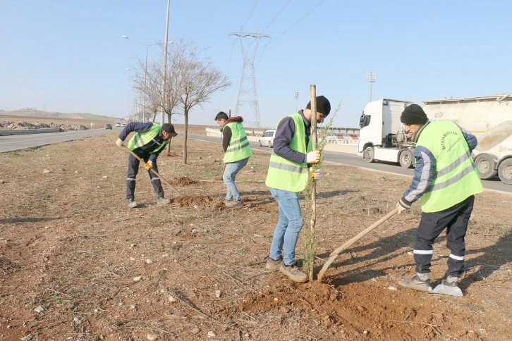 Hasankeyf dönel kavşağından başlayıp Batman Üniversitesi güzergahı boyunca yapılacak olan ağaçlandırma çalışmalarına yaklaşık bir hafta önce başlandı.