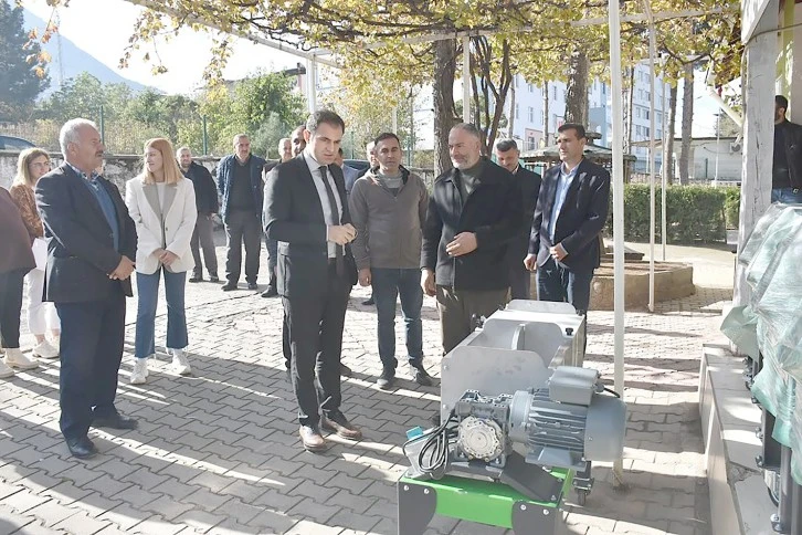 Üreticilerin ilçenin önde gelen ürünlerinden olan pekmez ve cevizli sucuk yapımında kullanılan üzüm sıkma makinesi Gürgenli köyü, Aydınlık köyü, Derince köyü, Turnalı köyü, Yücebağ beldesi Tepe mahallesi muhtarlarına teslim edildi.