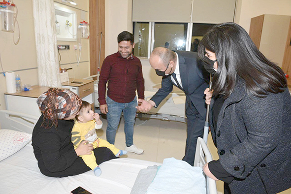 14. İnsansız Uçak Sistemleri Üs Komutanlığı ziyaretinden sonra Batman Eğitim Araştırma Hastanesinde yatan hastaları ziyaret eden Vali Canalp ve beraberindekiler, hastaların ve hastane çalışanlarının yeni yılını kutlayarak, 2023 yılının sağlık ve esenlik içinde geçmesi temennisinde bulundu.