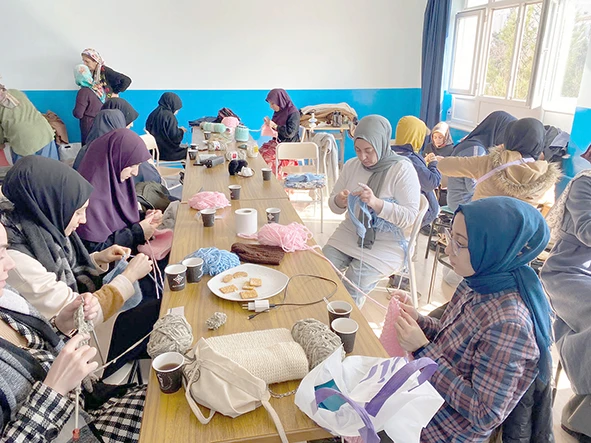 Batman esnaflarından aldıkları orlon ipi desteğiyle, Depremzedelere ulaştırmak üzere, tüm veli ve öğrencilerle, Atkı, Bere ve hırka örmeye başladılar.