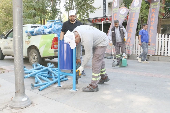 Belediye Temizlik İşleri Müdürlüğü, ana arterlerde ekonomik ömrünü tamamlamış, eskiyen ve yıpranan çöp kovalarını yenileme çalışmalarına başladı.