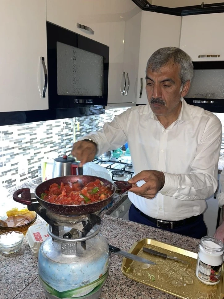 Sahura kadar gençler ile sohbet eden AK Parti Kilis Milletvekili Adayları A. Salih Dal ve Dr. Fazıl Arısoy sahurda melemen yaptılar.