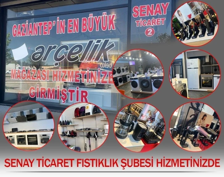 Arçelik’in tüm ürünlerini bünyesinden bulunduran Senay Ticaret’in Fıstıklık Şubesi de tıpkı Karşıyaka Polis Karakolu karşısındaki mağaza gibi bir ev için gerekli olan tüm beyaz eşya, ev ve mutfak ürünleri ile Gaziantep halkını buluşturuyor. 600 metrekarelik kapalı alanı ile Güneydoğu’nun en büyük mağazası olma özelliğine sahip olan Senay Ticaret Arçelik Şubesi ürün teşhiri ve kaliteli pazarlama ve satış yapısı ile açılışının olduğu daha ilk günden itibaren Gaziantep halkının beğenisini ve ilgisini topladı.