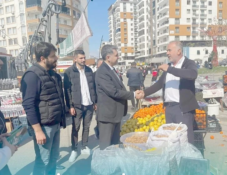 Pazar tezgahlarını tek tek dolaşarak esnafı ziyaret ederek istek, beklenti ve sorunlarını dinleyen Başkan Adayı Ceylan, pazar yerinde alışveriş yapan vatandaşlarla da sohbet etti.