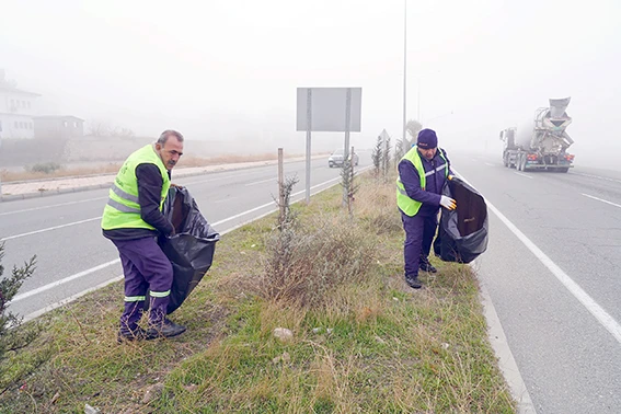 Sabah saat 08.00'da Belediye Makine İkmal Bakım ve Onarım Müdürlüğü bahçesinde bir araya gelen temizlik personeline, çöpleri toplamak için; poşet, eldiven, süpürge, kürek gibi malzemeyi dağıttı. Gidiş - dönüş yollarında; kaldırımlar, dönel kavşaklar, refüj, banket ve yol kenarlarına atılan ambalaj, pet şişe, cam şişe, kağıt, karton, atık lastikler, poşetler toplanarak kirlilikten arındırıldı.