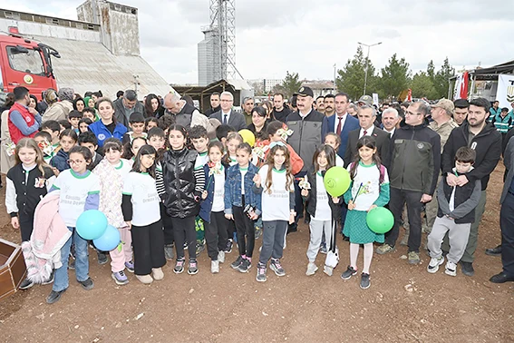Konuşmaların ardından Vali Canalp, öğrencilerle ve katılımcılarla birlikte fidanları toprakla buluşturdular.