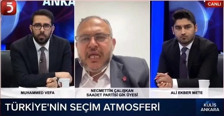 TV5 ve Serbest Tv’de programına katılan Çalışkan, Saadet Partisi’nin etkin olduğu bir hükümetin Türkiye yararına olacağını dile getirdi. Çalışkan, ülke gündemindeki gerginliğin ise suni olduğunu dile getirdi.