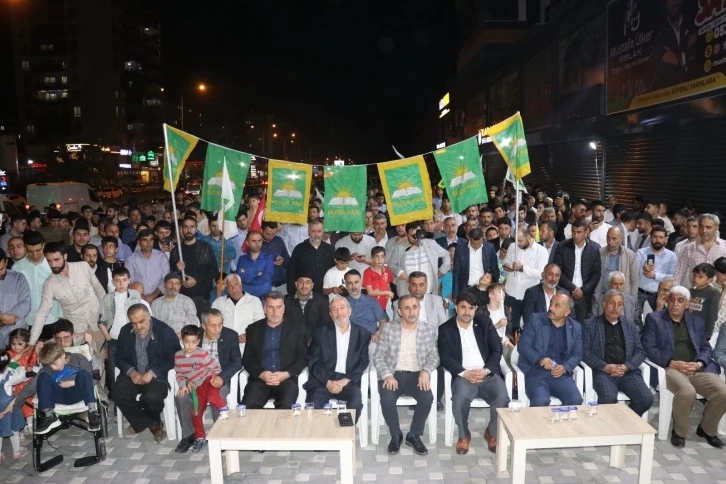 “Elbette ki memleketin sorunları çoktur. Siyaset kurumuna dair bizim ciddi eleştirilerimiz vardır. Halktan ve halkın gündeminden kopuk bir siyaseti ve siyaset anlayışını reddediyoruz. Beş yılda bir, yani seçimden seçime halkın, esnafın, köylünün kapısını çalan bir siyasetçi profili, belki de bu ülkenin en önemli sorunudur. Biz siyasete farklı bir tarz getirdik. HÜDA PAR, kurulduğu günden beri halkın içinde, interaktif bir çalışma yürüttü. Bizim siyaset anlayışımız, Ankara’da masa başından siyaset üretmek değil, sahada halk ile birlikte olmak, onlarla birlikte ve onların taleplerini merkezde tutma şeklinde bir anlayıştır. Yine ilk günden beri milletimizin değerlerinin savunucusu olduk. Aile kurumunun destekleyicisi, gençlerimizin ve yeni neslimizin geleceğinin garanti altına alınması her zaman bizim en öncelikli konularımız olmuştur. Bugüne kadar ahlaki yozlaşmaya ve sapıklıklara karşı hep mücadele ettik. İnsanımızın fıtratını ve değerlerini darmadağın eden bu sapık anlayışlara bu günden sonra da asla yol vermeyeceğiz.”