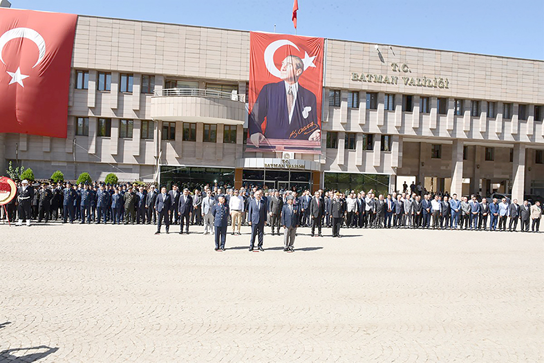 Valilik bahçesinde düzenlenen törene; Vali Ekrem Canalp, Garnizon Komutanı Hava Tuğgeneral İhsan Kaplan, Cumhuriyet Başsavcı Vekili Eray Akkavak, Adli Yargı Adalet Komisyonu Başkanı Fatih Yıldırım, Batman Üniversitesi Rektörü Prof. Dr. İdris Demir, Vali Yardımcıları İbrahim Güneş, Murtaza Ersöz ve Şükrü Alperen Göktaş, askeri erkan, kamu kurum yöneticileri, Muharip Gaziler Derneği Başkanı, Türkiye Muharip Gaziler Derneği üyesi gaziler ve şehit yakınları katıldı.