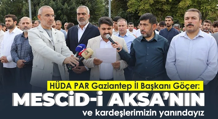 HÜDA PAR Gaziantep İl Başkanlığı Mescid-i Aksa davası için mücadele veren Filistinli Müslümanların, siyonist çetelerin vahşet ve zulümlerine karşı “Aksa Tufanı” adıyla başlattıkları operasyona destek amaçlı kitlesel basın