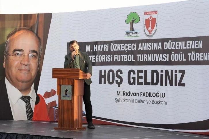 Yeşil sahanın yıldızlarının mutluluğunu paylaşan Şehitkamil Belediye Başkanı Rıdvan Fadıloğlu, tören esnasında yaptığı konuşmada merhum Mehmet Hayri Özkeçeci’nin adını yaşatmaktan onur duyduklarını kaydetti. Fadıloğlu, şu sözleri kaydetti: