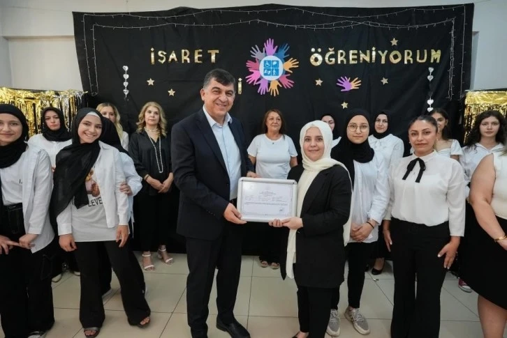 120 saatlik işaret dili kursu eğitimini başarıyla tamamlayan 38 kursiyer sertifika almaya hak kazandı. Düzenlenen tören ile birlikte kursiyerler, sertifikalarını Şehitkamil Belediye Başkanı Rıdvan Fadıloğlu’nun elinden aldı.