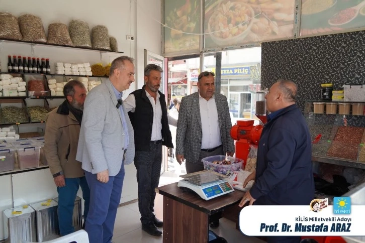 İYİ Parti 28. Dönem Kilis Milletvekili Adayları Araz ve Polat parti teşkilatı üyeleri ile birlikte Ekrem Çetin Mahallesi sakinlerinin talepleri ve sıkıntıları dinlediler. İYİ Parti Milletvekili adayları vatandaşlara stratejilerini anlatarak esnafların sorunları ve çözüm önerilerini anlattılar.