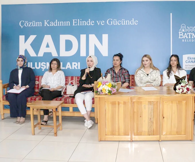 Batman Valisi ve Belediye Başkan Vekili Ekrem Canalp’ın talimatıyla, Belediye Konukevi Müdürlüğü koordinesinde gerçekleşen ‘Çözüm Kadının Elinde ve Gücünde’ temalı Kadın Buluşmaları toplantısına; Belediye Kadın Konukevi Müdürlüğü, Kadın ve Aile Hizmetleri Müdürlüğü, İklim Değişikliği ve Sıfır Atık Müdürlüğü, mahalle muhtarı ve mahalleli kadınlar katıldı.