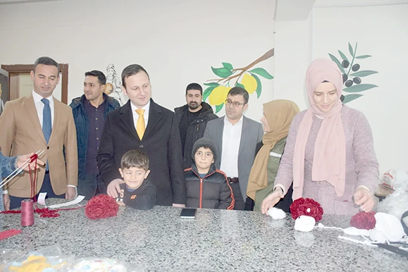 Kaymakam Güngör, proje kapsamında yapılan oyuncakları görmek için Halk Eğitim Merkezi ve Aile Destek Merkezini (ADEM) ziyaret etti.