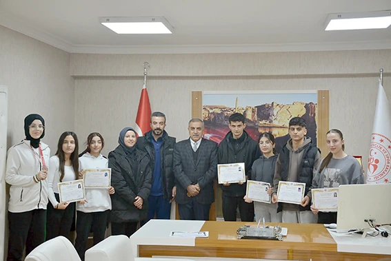 Başarılı sporcuları ve antrenörlerini makamında kabul eden Gençlik ve Spor İl Müdürü Mehmet Şafi Özperk, siyah kuşak ve 1. Dan’a terfi eden sporcuları tebrik etti.