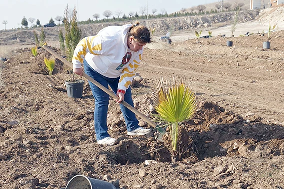 Engelsiz Yaşam ve Yeni Hayat Bakım Merkezinde kalan engelsiz bireyler, kampüs girişinde bulunan Teknoloji Geliştirme Bölgesi (Teknokent) yanında yeşillendirmeye ayrılmış alana gelerek fidanları toprakla buluşturdu.