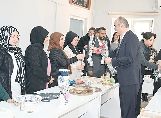Düzenlenen mesleki eğitim ve el sanatları kurslarında kadınların sosyal, kültürel ve ekonomik hayata katılımlarını sağlamak amacıyla hizmet veren BİLMEK Kurs Merkezi ile Aile Destek Merkezi ve Vefa Programı Birimi Çamaşırhanesini ziyaret eden Vali Canalp, kursiyerlerle bir araya gelerek, kadınların 8 Mart Dünya Kadınlar Günü’nü kutladı.