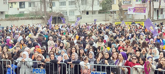 Programda konuşan DEM Parti Grup Başkan Vekili ve DEM Parti Kars Milletvekili Gülistan Kılıç Koçyiğit ise yaşanan son sürece dikkat çekti. Koçyiğit, şunları söyledi; “Kürt sorunun demokratik ve barışçıl yollarla çözülmesi için Öcalan’ın yaptığı tarihi çağrıyı Batman’dan selamlıyoruz. Öcalan’ın barış ve demokratik toplum çağrısı aynı zamanda biz kadınlaradır. Bugün Kürt sorunun şiddetten arındırılması, çatışma zemininden çıkarılması, gerçek anlamda siyasi ve hukuki bir zemine çekilmesi aynı zamanda biz kadınların mücadelesinin önünü açacak ve mücadelemizi büyütecek bir hamledir. Yeni bir dönem başlasın diyor, yeni bir kapı aralamak istiyor. Barış için, eşitlik için özgürlük için ve demokratik bir ülke için hepimize çağrı yapıyor. Bu çağrının arkasında mıyız? Öcalan’ın bu çağrısına tam destek veriyoruz.”