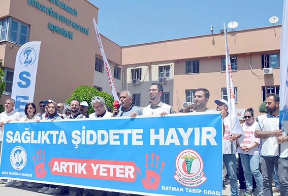 Batman Tabip Odası ve SES Batman Şubesi, sağlıkta artan şiddet olaylarına dikkat çekmek amacıyla Eğitim ve Araştırma Hastanesi Başhekimlik binası önünde ortak basın açıklaması gerçekleştirdi.