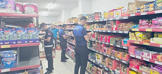 37 zincir market, 15 büyük market, 29 bakkal olmak üzere 81 işyerini denetleyen ekipler; son tüketim tarihi, fiyat etiketi, işyeri açma ve çalıştırma ruhsat durumu, genel temizlik ve ürünlerin muhafaza koşulları ile ilgili kontrol yaptı.