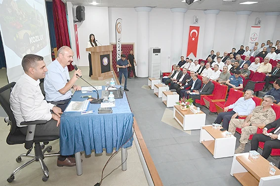 Vali Ekrem Canalp açılış konuşmasıyla başlayan toplantıda; gerçekleştirilen köy ziyaretleri kapsamında yürütülen hizmetler, devam eden, yapılması planlanan yatırımların yanı sıra ilçe merkezinin altyapı, üstyapı, sağlık, eğitim ve ulaşım gibi sorunlar görüşüldü.